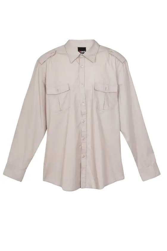 100% cotton Military styled shirts removable epaulettes on shoulder buttoned flaps to support rolled up sleeves enzyme washed Long sleeve