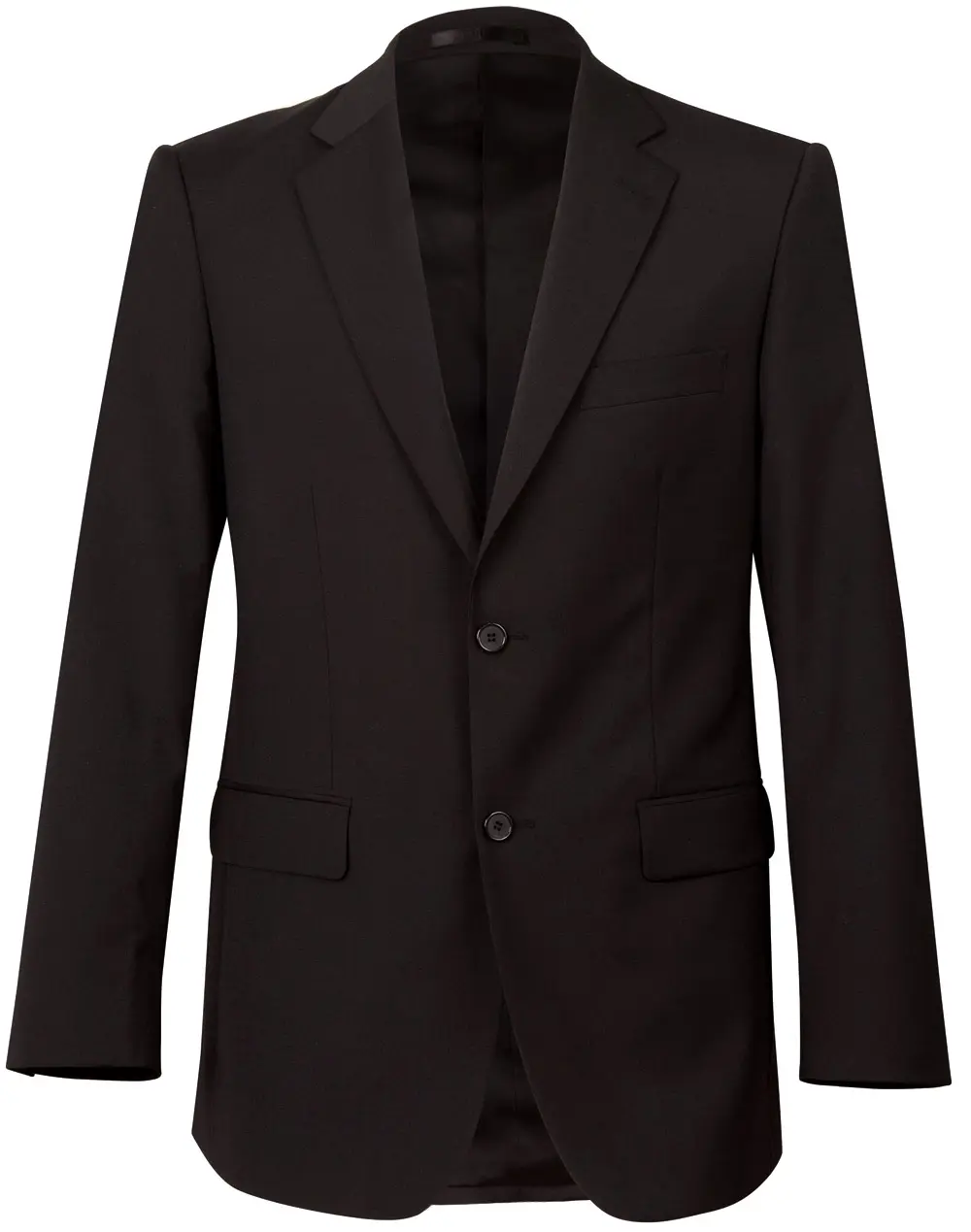 Two buttons, single breasted tailored, side vents.